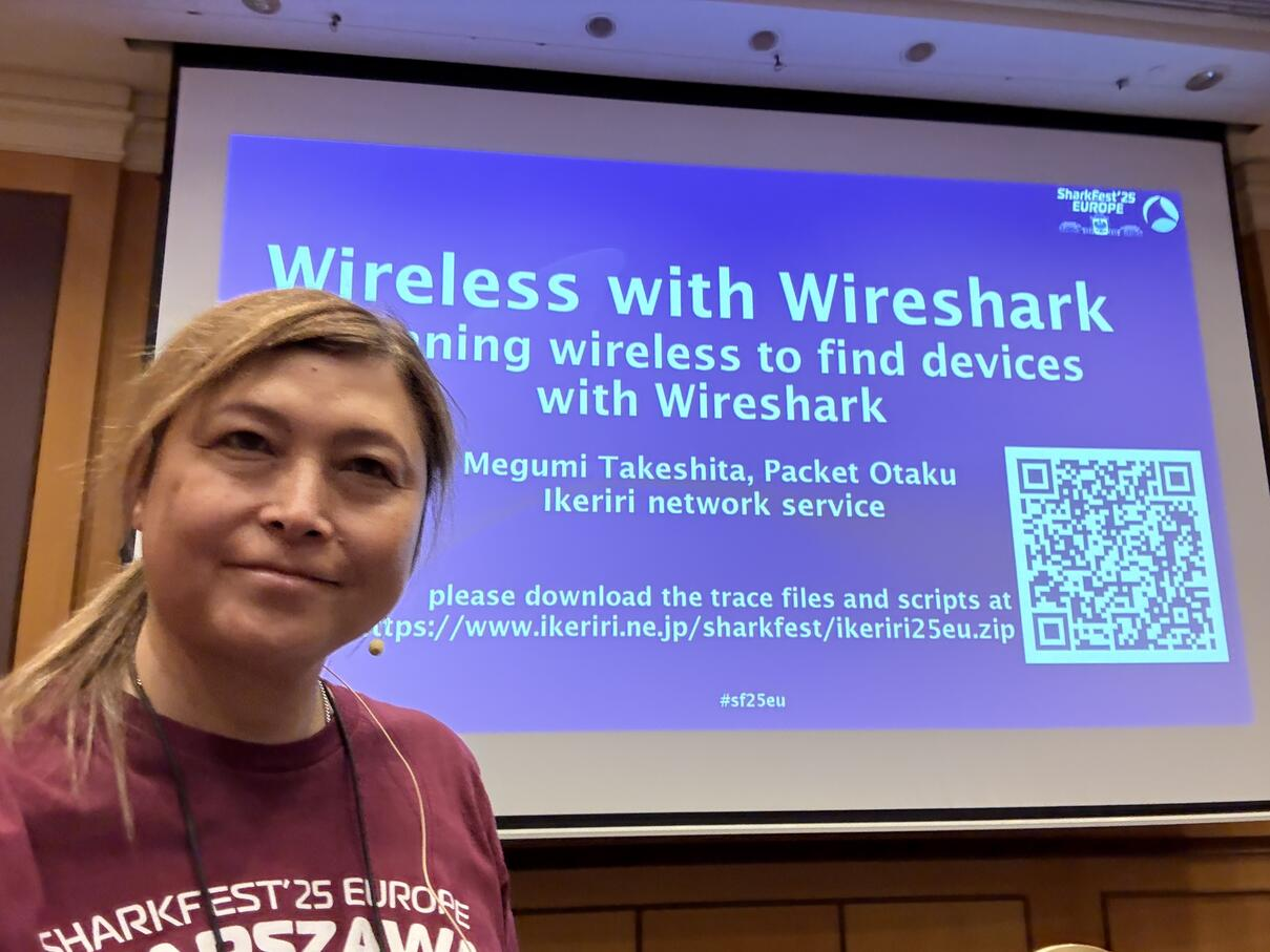 いけりりネットワークサービス株式会社竹下は2025年11月3日から7日までポーランド ワルシャワにて開催されるWireshark開発者会議Sharkfest'25 EUにて「Wireless with Wireshark」について講演します。→Sharkfest25EU公式