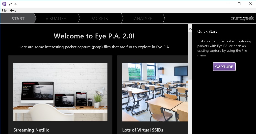 特別なプログラムを必要とせず、EyePA単体で、推奨アダプタもしくはAirPcapシリーズで無線LANのパケットキャプチャを行うことができます。→こちらを確認ください